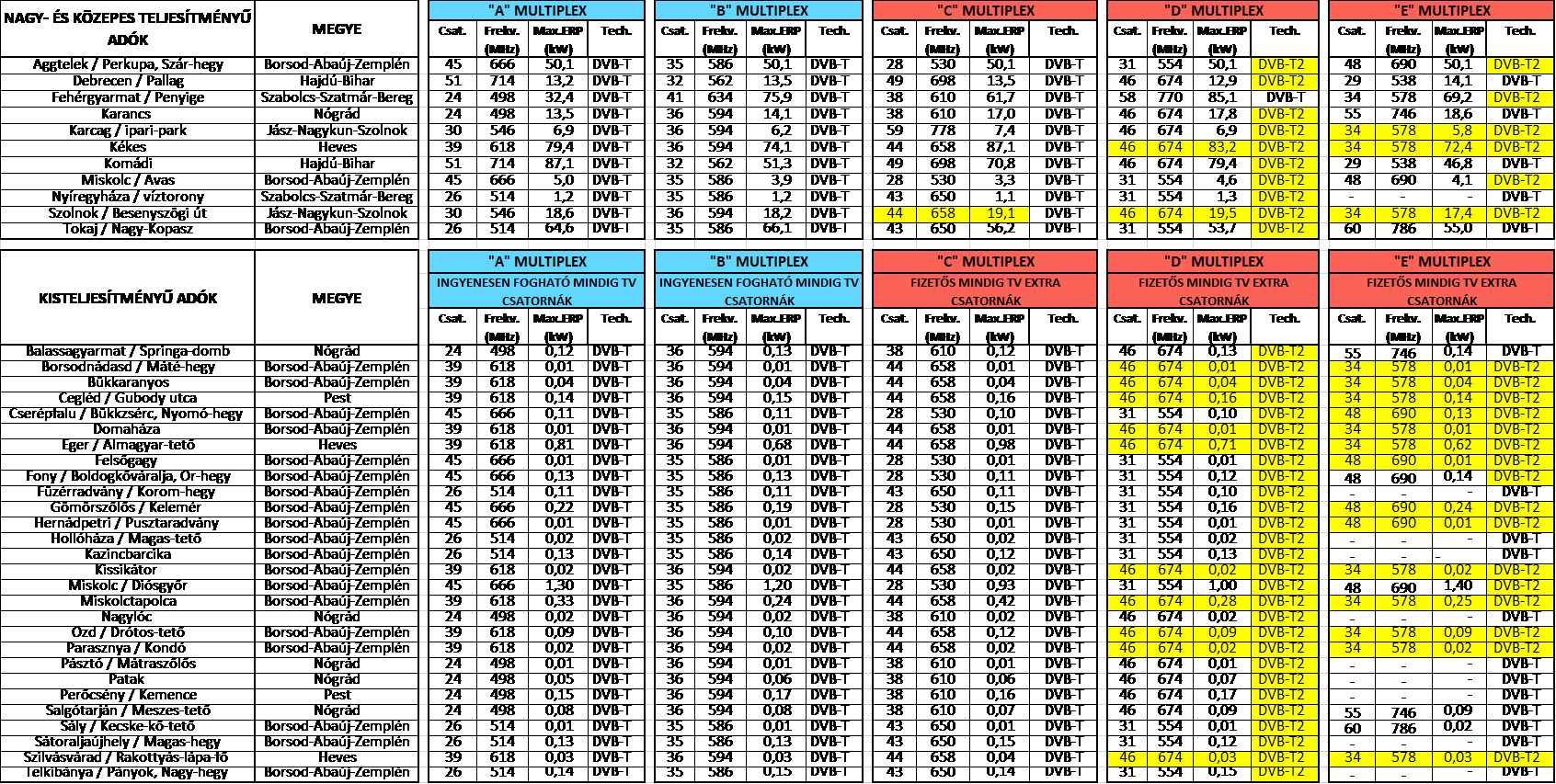 Az érintett adókörzetek frekvenciatáblázatát itt találjaA fenti munkálatok ideje alatt csak a szükséges ideig szünetel a műsorsugárzás. A munkák végzésénél kiemelt prioritás, hogy az érintett régiókban, azon belül is a nagy lakosságszámú területeken történjen meg leghamarabb a szolgáltatás visszaindítása. A frekvenciacserék nem érintik az adók kisugárzott teljesítményét, ezáltal a mindigTV és mindigTV PRÉMIUM programjai változatlan lefedettségi területről érhetők el.