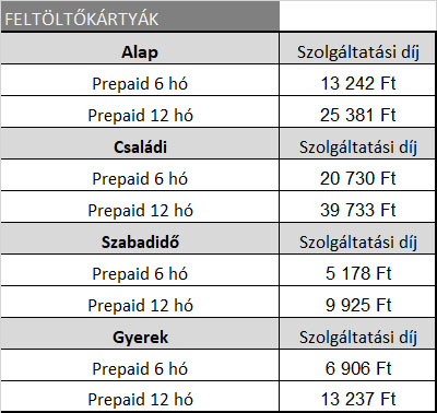 Az egyszeri aktiválási díj 12 hónapos határozott idejű szerződéskötés esetén bruttó 2.199 Ft. Határozatlan idejű szerződéskötés esetén az egyszeri aktiválási díj minden esetben az általános szerződési feltételek (ÁSZF) 2. számú mellékletében szereplő listaárnak megfelelő összeg (jelenleg bruttó 2.899Ft). Az aktiválási díj vételi eszközönként kerül kiszámlázásra, függetlenül a megrendelt programcsomagoktól.