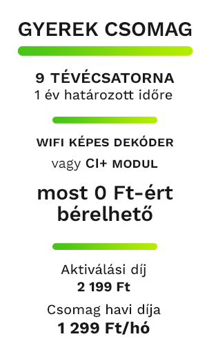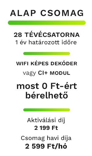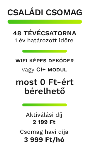 Most bármelyik havidíjas tévécsomagunkat választod lehetőséged nyílik a Wifi képes dekóder és a CI+ modul bérlésére. Egy éves hűségidővel az első eszköz bérleti díját elengedjük.