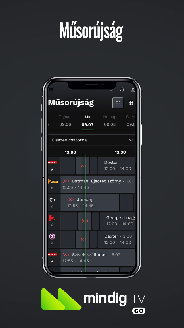 A mindigTV GO applikációként is letölthető mobiltelefonjára.